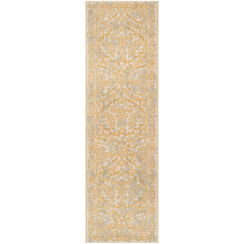 The accent rug, measuring 2 feet 2 inches by 4 feet, is perfect for adding a touch of sophistication to any room. Its intricately detailed pattern showcases a harmonious blend of classic motifs that exude a sense of luxury and comfort.