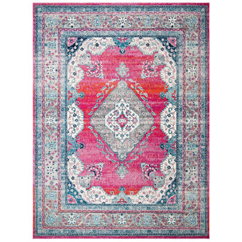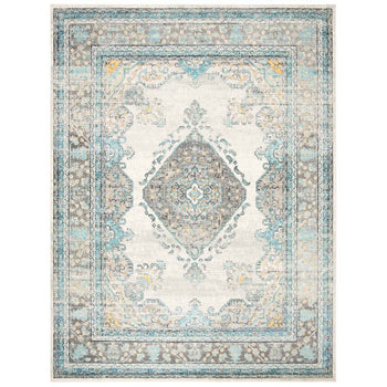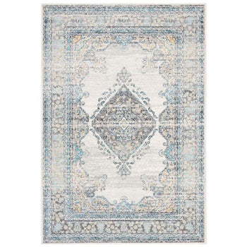 The intricate pattern displayed on the rug, featuring harmonious grey and blue hues, showcases a beautiful amalgamation of traditional motifs with contemporary design sensibilities. This creates an artistic centerpiece for your hallway or entryway, complementing a wide variety of decor themes.