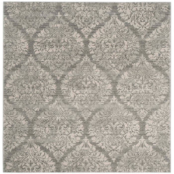 The rug showcases a sophisticated pattern with intricate details and a harmonious grey and silver color palette, infusing your room with a serene and inviting ambiance. The timeless design complements both modern and traditional interiors, providing a subtle yet impactful statement piece.