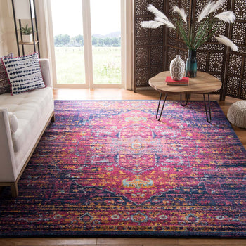 Elevate your living space with the enchanting aura of our Power Loomed Accent Rug. This exquisite 2'-2" X 4' area rug is a meld of rich blue and vibrant fuchsia tones, beautifully intertwined to create a mesmerizing appeal. Its intricate pattern draws inspiration from traditional designs, offering a timeless elegance that will complement both modern and classic decors.