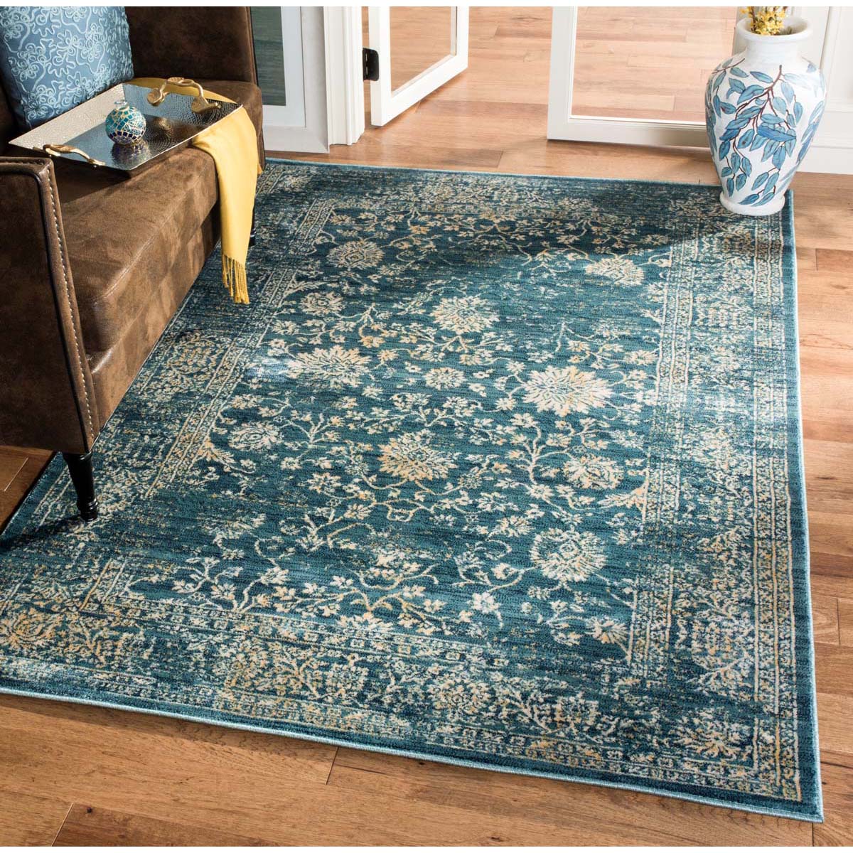 The enchanting pattern, as seen in the image, weaves a story of traditional charm with its ornate floral and botanical designs, bordered by a decorative frame that echoes heritage motifs. The OEKO-TEX certification guarantees that your rug is free from harmful substances, ensuring safety and health for you and your loved ones.