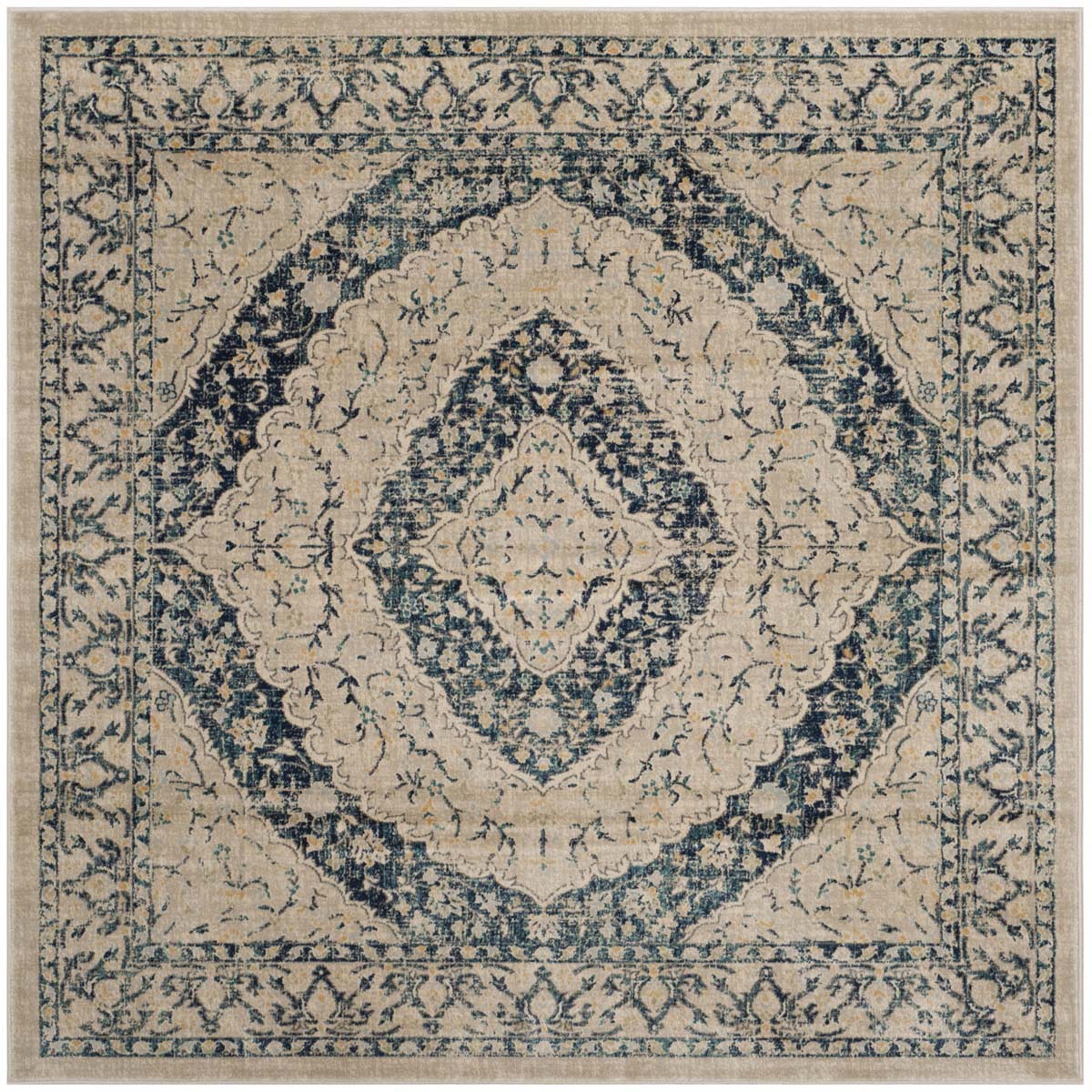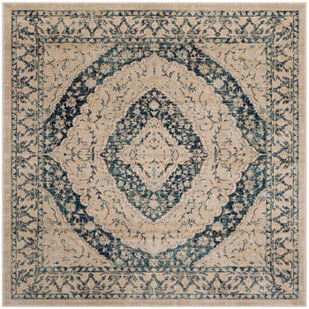 Create an elegant and sophisticated ambiance in your home with this exquisite 6'-7" X 6'-7" square area rug. The harmonious blend of beige and navy hues in a timeless pattern brings both classical charm and contemporary style to any room in your home.