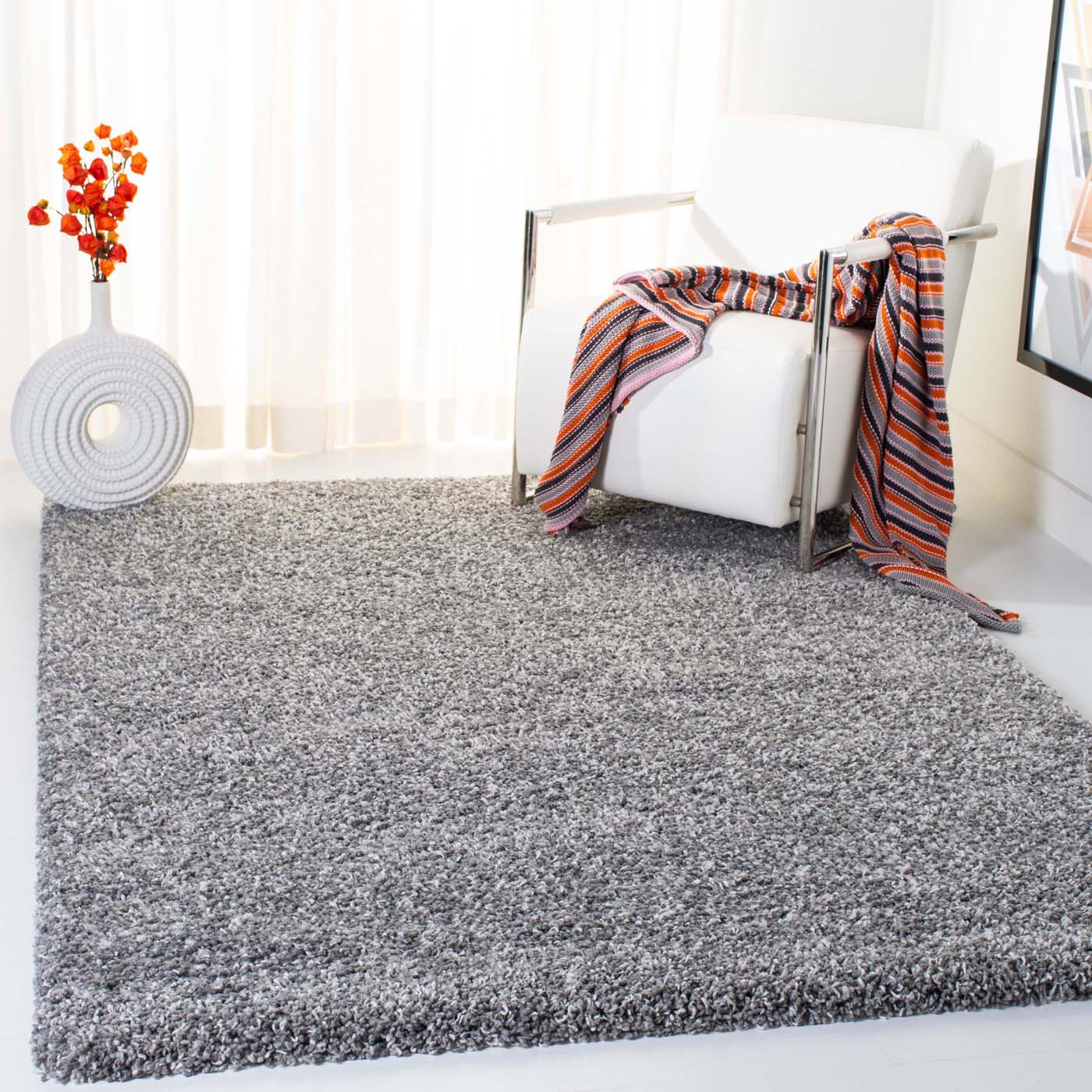 Whether your decor is modern minimalist or comfortably traditional, this area rug will enhance your setting with its chic, shaggy appeal and a palette that complements a wide array of color schemes. Get ready to step into a world of comfort and understated elegance with this elegant shag rug.