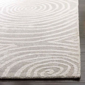 Crafted with meticulous attention to detail, this rug features a unique pattern reminiscent of serene ripple effects. The interlocking circles and soft lines create a dynamic visual texture that will capture the eye and add depth to your floors.