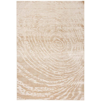 The rug's pattern, derived from the image, brings out the allure of abstract art, with concentric lines that mimic the ripples of a serene pond. The ivory tone ensures that the rug provides a neutral base that can unite various design elements in a room while adding warmth and depth to the space.