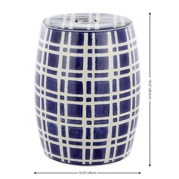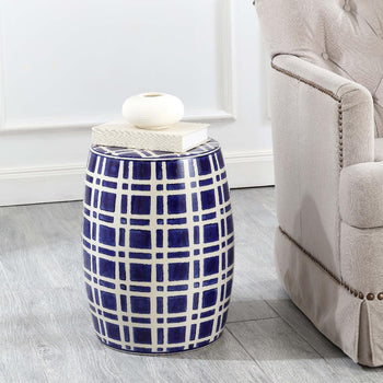 Add a chic and stylish accent to your home with our Eytan garden stool. A sleek profile and chic pattern make the stool an inviting and charming addition to any corner. Its linear geometric pattern is accentuated with a contrasting combo of navy blue and white to strike a visual impact. Both classy and modern, our garden stool works well in a variety of settings. It can sit in a sunny spot in your garden, or nestle between two rockers to provide an extra surface for holding and displaying your essentials and decor items.