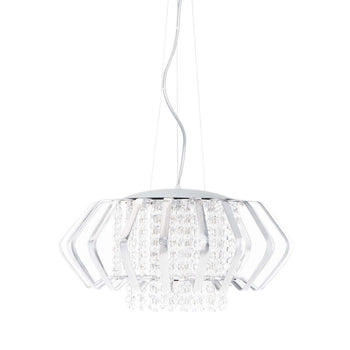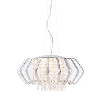 Bring modern romance to any interior with this show stopping contemporary pendant light. Perfect for adding radiance to the dining room or haute style to the living room, its polished chrome metal frame and shimmering crystals are the height of luxury.