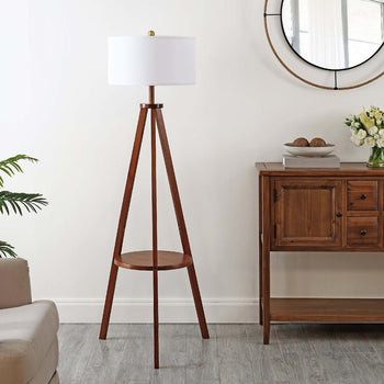 Revitalize your Decor with the Mid-Century chic of this fabulous Faris Floor Lamp. Featuring subtle curves atop its natural wood tripod base, Faris's petite shelf is ideal for storage or display in any room, and its white drum shade completes the look.