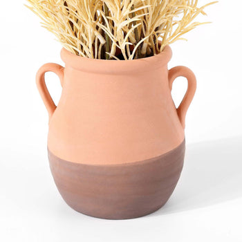 Give a natural and elegant touch of spring to your home with our faux potted wheat plant. The soft, fuzzy texture and delicate form of the wheat plant makes it a stunning seasonal accent. Our faux arrangement realistically captures the elegant details and texture to invite organic charm to your home. Hosted in a stunning brick red ceramic pot, our faux potted arrangement serves as a classy seasonal centerpiece for your nightstand, coffee table, or buffet.