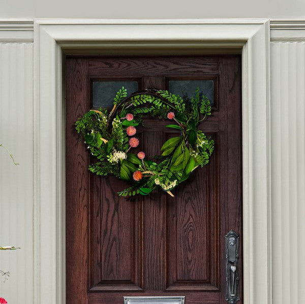 Brighten up your spring decorating with our stunning faux sweetgum and mandarin semi-wreath. Our vibrant and refreshing wreath artfully arranges sweetgums and mandarins to vouch for a modern and elegant look. Featuring a rich variety of colors and textures, the faux wreath is sure to capture the eye with its lush detailing. It can serve as a vibrant and charming centerpiece for the season, ready to enliven your door, window, or mantelpiece.
