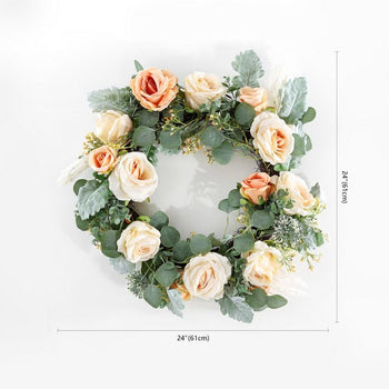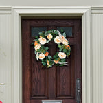 Give a warm and heartiest welcome to the spring season with our faux rose and eucalyptus wreath. The subtle, silvery greens of eucalyptus create the perfect backdrop for the eye-catching beauty and lively colors of rose. Enriched with realistic details, our faux wreath provides the perfect glimpse of the spring season. The wreath is ready to add a splash of color and textures, lending a lively seasonal touch to your door, fireplace mantel, or dining table.