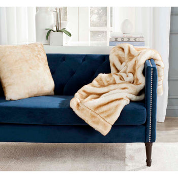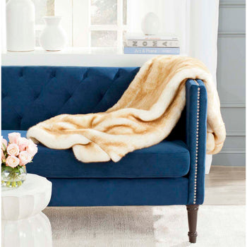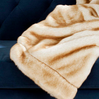 Cocooning becomes a luxurious endeavor with this soft and sensuous faux fur throw in light brown acrylic plush simulating the color and shading of natural fox. Drape this plush throw across a bed or sofa for warmth, texture and a touch of posh Hollywood g