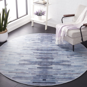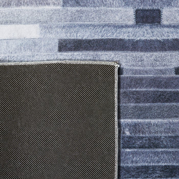 The rug's sophisticated pattern, as seen in the image, showcases a harmonious blend of horizontal and vertical gradient stripes that create a dynamic and visually intriguing effect. This textured landscape of lines and shades will not only become the focus of your floor but also provide a tasteful and elegant statement piece that resonates with contemporary aesthetics.
