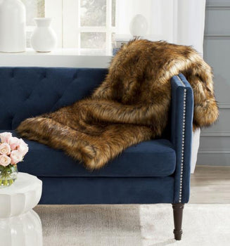 Cocooning becomes a luxurious endeavor with this soft and sensuous faux fur throw in warm brown acrylic plush simulating the color and shading of natural raccoon. Drape this plush throw across a bed or sofa for warmth, texture and a touch of Hollywood glam.