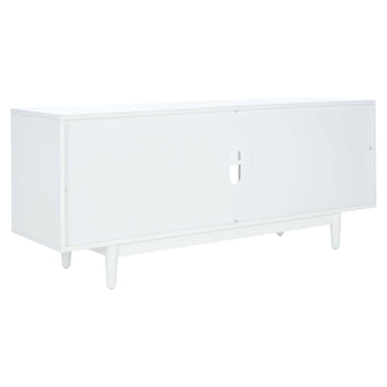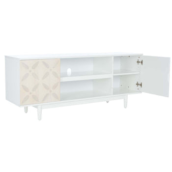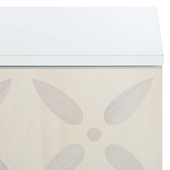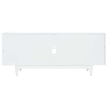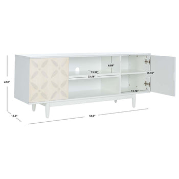 Bring fresh modern chic to your entertainment space with this fabulous Faye Media Stand. Featuring geometric blossoms of stylized floral patterns, Faye's gentle whitewash finish softens its contemporary clean-lined look, while two doors and two shelves provide plentiful storage for consoles or devices.