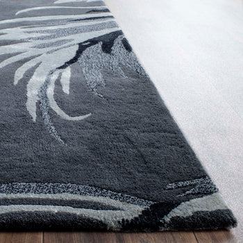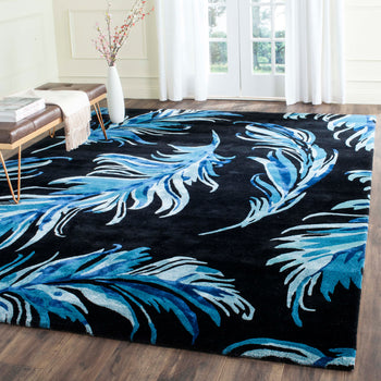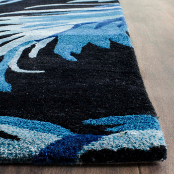 Elevate your living space with our Hand Tufted Wool Rug, crafted in India and sized at a versatile 4' X 6'. This small rectangle rug is a testament to artisanal quality, featuring a dynamic black and blue color palette that injects sophistication into any room. The bold leafy pattern dances across the rug, offering a modern take on natural motifs, perfect for those seeking a blend of contemporary style and timeless design. Made of soft, plush wool, this rug promises both comfort and durability, making it an ideal choice for areas with high foot traffic. Whether it's the centerpiece in your living room or a statement piece in the hallway, this rug is sure to captivate and complement your existing decor.