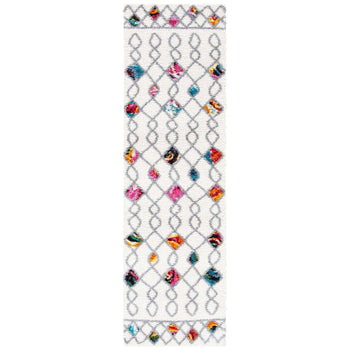 The runner is a statement piece in CREAM / MULTI color palette, with vibrant and playful splashes of color interwoven within its Shag & Flokati style, making it an artful addition to your d?cor. The polypropylene pile composition guarantees durability and easy maintenance, ideal for busy households seeking both comfort and convenience. Each playful burst of color within the intricate trellis-like pattern introduces a modern twist to a classic design, promising to enliven any room with its dynamic and whimsical charm.