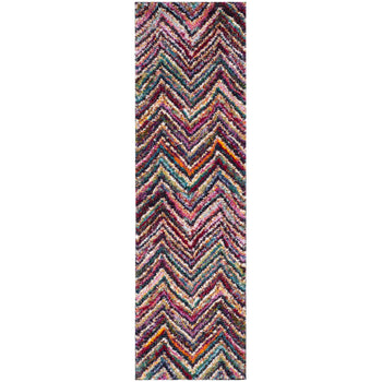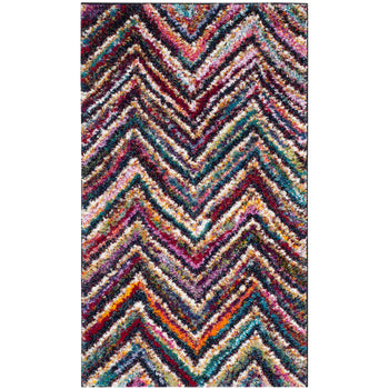 The rug showcases a striking chevron pattern that dances across the length, infusing your room with dynamic movement and a contemporary sense of style. Each zigzag line presents a blend of rich colors that are artfully combined to create a visually delightful and eclectic aesthetic that can complement a variety of decor themes.