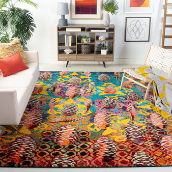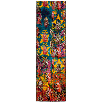 Power-loomed with precision in Turkey, this runner dazzles with its robust and resilient polypropylene pile, ensuring both durability and ease of maintenance. The pi?ce de r?sistance is the rug's captivating color palette, with its predominant turquoise hues interplaying with a spontaneous symphony of multicolored patterns, perfect for infusing any hallway or narrow space with a burst of energy and color.