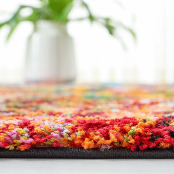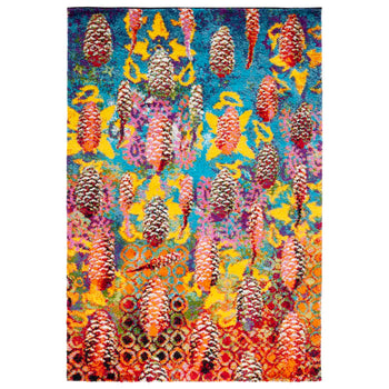 Adopting a Shag & Flokati style, the rug's exuberant texture adds dimension and comfort to your home, creating a cozy and inviting atmosphere. The rich, abstract patterning draws inspiration from both modern art and traditional motifs, evidenced by the lively image before you, guaranteeing that this rug will be a statement piece no matter where it lays.
