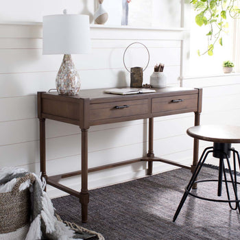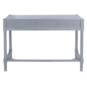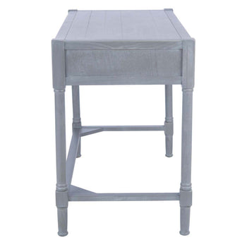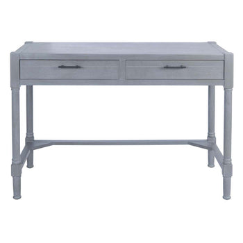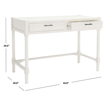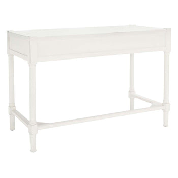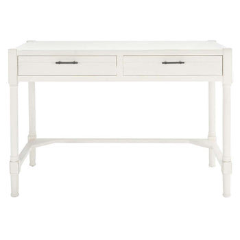 Refresh your workspace with the Filbert Writing Desk, a new design classic styled to elevate the aesthetic of any interior. Filbert's open frame is given an elegant treatment with traditional carved details, while a distressed white finish completes the look. Two drawers provide ample storage for office essentials.