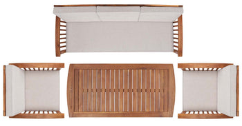 Taking Inspiration From 1920S Garden Decor, This Finnick Living Set Transforms Classic Silhouettes With Chic Modern Charm. The Thoroughly Contemporary Natural Finish Of Finnick's Wood Frames And The Plush Beige Cushions Atop Its Two Armchairs And Sofa Ensure It Remains A Style Icon For Years To Come. Includes Matching Coffee Table.