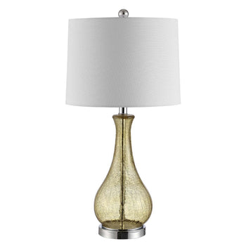 Designed to update any living room, this contemporary table lamp blends seamlessly into any décor. Its clear glass body reflects the light, ethereal glow filtered through its complementary cotton barrel shade. Designers love its sleek chrome finish.