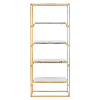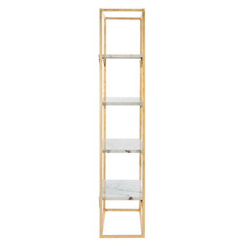 Add a dash of modern sophistication with this contemporary 4 tier ?tag?re. Framed by a radiant gold foil finish, its ample white marble veneer shelves are ideal for curating treasures. Designers use them in pairs in the living room.