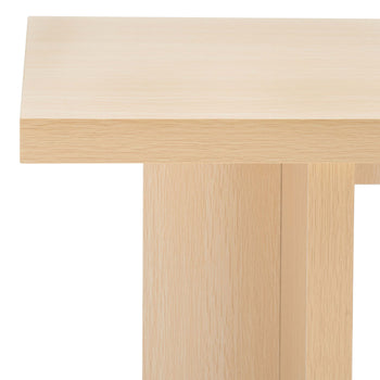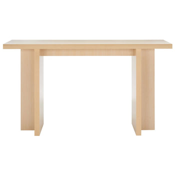 Upgrade any corner with the architectural grace of our large Florence console table. Enriched with modern flair, our console table showcases clean and crisp lines. Its sleek rectangular top is supported upon a T-shaped architectural base. Enriched with the rich grains of wood in a sleek natural finish, our console table makes an elegant statement in any corner of your home. It allows your beloved decor items to stand out for the perfect styling and display.