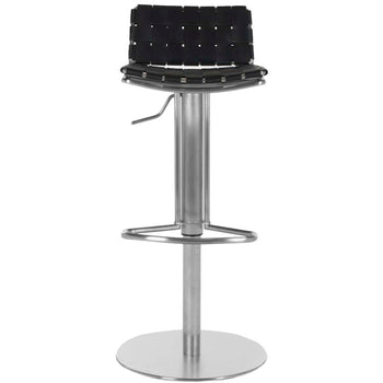 Choose the Floyd Gas Lift Bar Stool for stylish comfortable seating that adjusts to your needs. With black woven bonded leather seat and back contrasting a sleek stainless steel base, pedestal and footrest, Floyd offers fashion and function. Designed for counters and people of varying heights, Floyd's seat height can be positioned from 22.8'sto 31.9.'sAssembly required.
