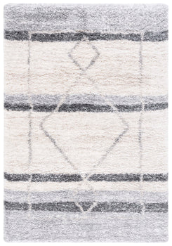 Elevate your living space with the timeless elegance and luxurious comfort of our Ivory/Grey area rug, sized 4' x 6' for versatile placement in your home. This small rectangular rug boasts a plush 2-inch pile height that provides an indulgent underfoot experience with every step.