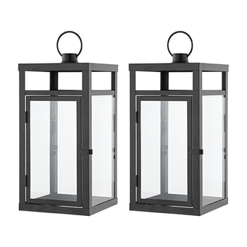 Sleek and modern yet utterly timeless, this Fraleigh Small Outdoor Lantern Set is a must-have for today's outdoor entertaining. Fraleigh's classic silhouette and jet black finish effortlessly complements any porch, patio, or poolside bar. Sold in a set of two.