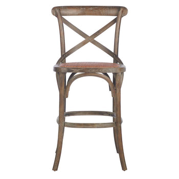 With its willowy frame and iconic cross back inspired by Michael Thonet's classic bistro chair, the Franklin counter stool by Safavieh is ideal in kitchen or great room. Crafted of solid American oak, including the X arch brace, this casual counter stool is finished in weathered oak with a seat of rattan caning.