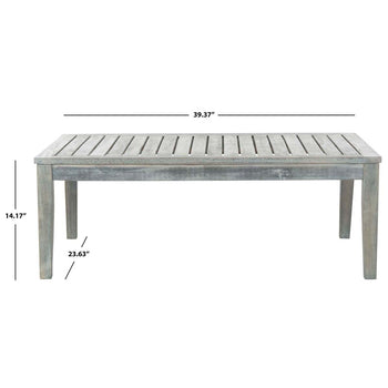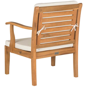 Exuding British Colonial style, the Fresno 4 piece outdoor living set features back detailing and coffee table top inspired by plantation shutters. The slatted design is crafted of natural acacia wood with contrasting beige all weather cushions.