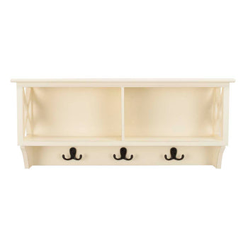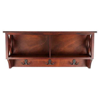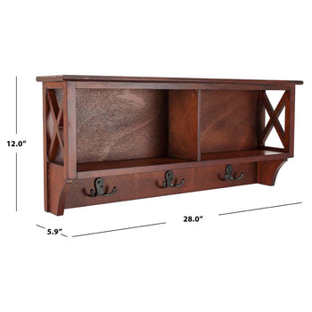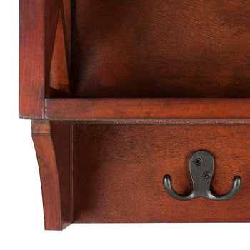 Organize any space in an instant with this traditional hanging storage wall rack. Its cherry finish and classic design give a warm feel to any entryway, kitchen or mudroom, while its open storage compartments and three double hooks allow easy access.