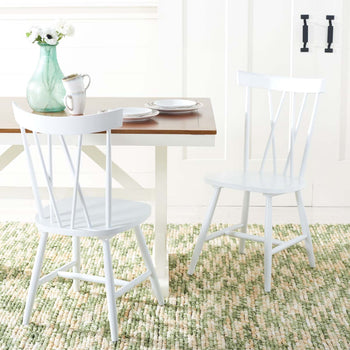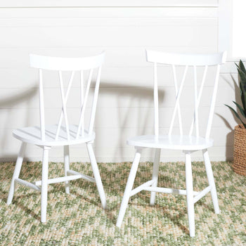 This Friar Dining Chair beautifully embodies all the best of classic-contemporary design. Traditionally styled with a timeless Windsor silhouette and slender double-crossed back, Friar is given a sleek modern update in a white finish. Sold in sets of two.