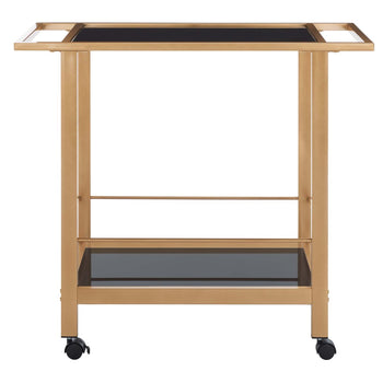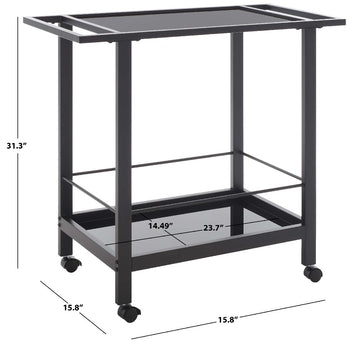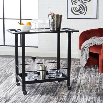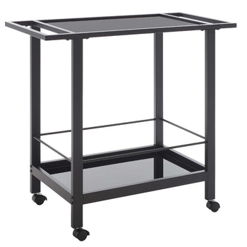 Embrace The Modern Charm And Convenience Of Our Gaelle Bar Cart. Our Two-Tier Bar Cart Delivers A Clean And Streamlined Silhouette To Blend Into Any Modern Or Contemporary Setting. It Features A Matte Black Finish And Black Printed Glass To Keep The Look Sleek And Charming. The Design Seamlessly Integrates Handles And Rolls Over Casters To Keep Your Glassware And Favorite Bottles On Hand. Our Functional And Stylish Bar Cart Is Uv And Fade-Resistant To Serve You In Any Corner Of Your Home.