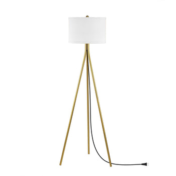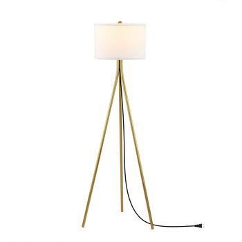 Styled after photography studio lighting, this Galilea Floor Lamp is at once dramatic and understated. Galilea's gold tripod base flows with rich decorative depth that visually expands any living space, perfectly complemented by its clean-lined white drum shade.