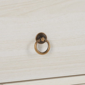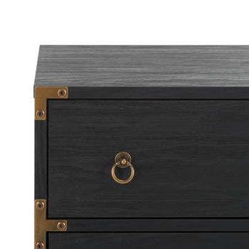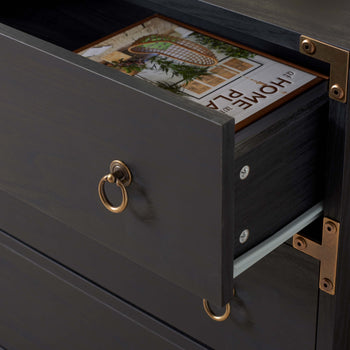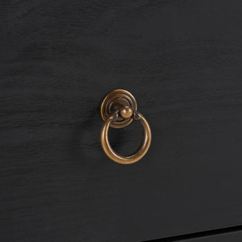 Organize all your essentials and belongings in our elegant and charming Galio chest. Thoughtfully streamlined, the crisp and clean lines of our chest boast timeless aesthetics. It is gracefully perched and adorns a rich veneer to enliven your home. Being inspired by the effortless beauty of vintage style, our chest is finished off with ring pulls and gold hardware on the edges. An elegant and timeless addition, the chest includes three spacious drawers to serve as a practical storage solution for your living room, entryway, or bedroom.