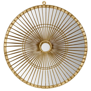 Inspired by intriguing geometry of stars in the evening sky, the Gemini mirror makes a contemporary statement with spokes of gold or silver finished iron for transitional and contemporary homes. Its conical silhouette distinguishes Gemini as a conversation piece.