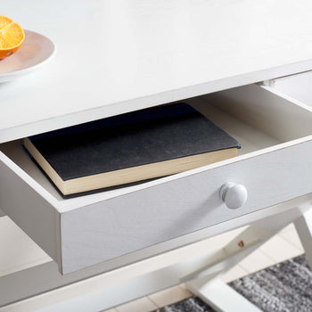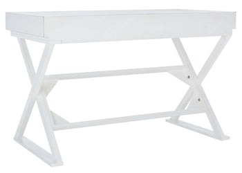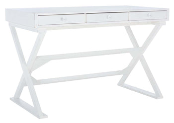 Make efficient use of space with the compact silhouette of this Gilbert Desk. Gilbert revitalizes the classic sawhorse frame with a clean white finish and three slim drawers, making it perfect for a home office, bedroom workspace, or busy living room.