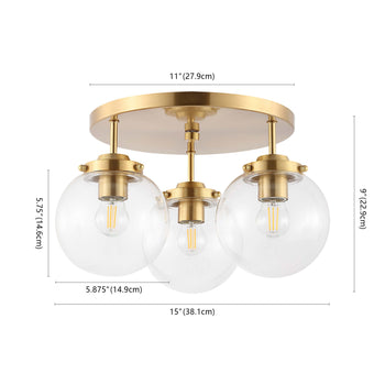 Mid-Century chic is given a lavish contemporary twist in this glamorous Ginesta Flush Mount. Three clear globe lights illuminate your Decor with retro resplendence, shimmering elegantly beneath its brass gold base, making Ginesta a designer favorite.