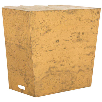 This contemporary console makes a monumental statement in any space. Inspired by the form and style of modernism's Brutalist designers, its gold finish and substantial presence makes this a top selection by interior decorators.