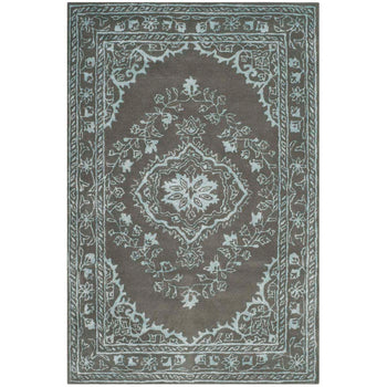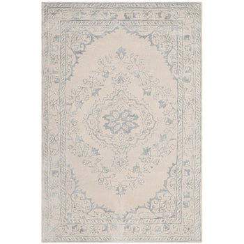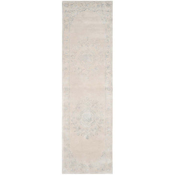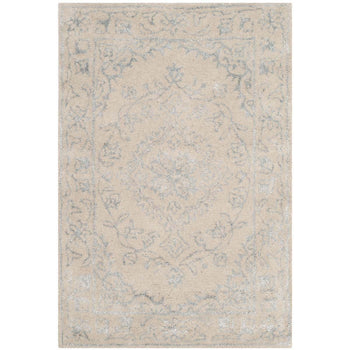 Crafted in the rich tradition of Indian rug-making, this rug features a sophisticated light grey color palette, adding a sense of tranquility and understated elegance to your home. The delicate pattern, inspired by the image provided, showcases timeless motifs that whisper heritage while seamlessly blending with contemporary aesthetics.