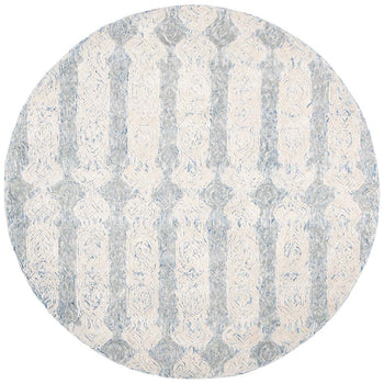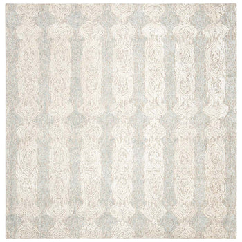 The contemporary style of the piece shines through its sophisticated grey and ivory color palette, offering versatility that complements any room. The rug features an intricate pattern, showcasing an array of beautifully detailed, repeating motifs that create a sense of rhythm and harmony throughout the design. This pattern infuses your space with a timeless elegance that is both eye-catching and subtly understated.
