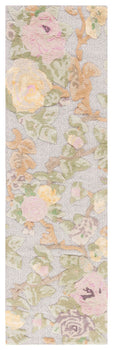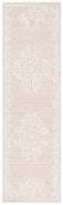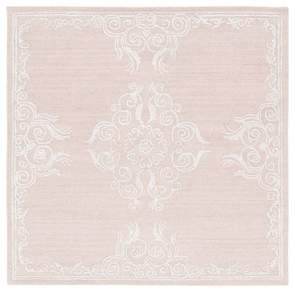 Adorned with an intricate pattern, the rug showcases a harmonious blend of pink and grey hues, which evoke a sense of calm and elegance in any room setting. Floral elements gracefully dance across the rug, capturing the essence of a serene garden, while geometric diamond detailing in the background adds a sophisticated layer of design.
