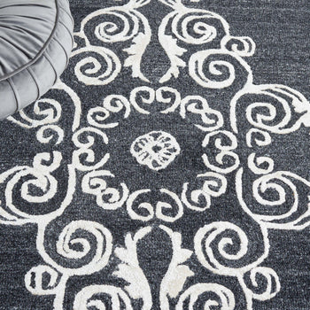 The elegant scroll patterns that adorn this rug bring a touch of opulence and character to your floors, seamlessly blending classic design elements with a modern aesthetic. Whether placed in your living room, bedroom, or study, this area rug promises to be a focal point that inspires and delights.