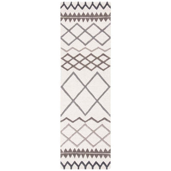 The harmonious blend of ivory and grey hues in this runner creates a neutral palette that complements any decor, providing a refined backdrop that enriches both traditional and contemporary settings. The subtle variations in the pattern, featuring interlocking diamonds and delicate zigzag lines, provide depth and texture that catch the eye and invite closer appreciation.