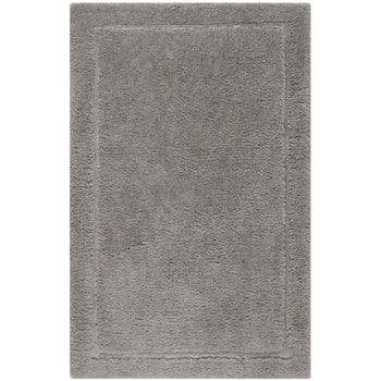 This rug boasts an understated pattern, featuring a harmonious play of textural gradients that create a serene and captivating visual effect. The raised border adds depth and dimension, drawing the eye inward to the tranquility of its design. The gentle variations in the grey hues are complemented by the sparkle of Lurex threads, giving this piece a modern edge while preserving its classic appeal.