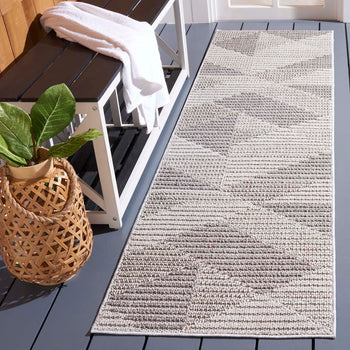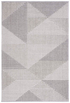 The modern palette of light grey and grey hues creates an inviting atmosphere, harmonizing with varied interior decors. The rug's dynamic geometric design adds depth and texture, making it an eye-catching centerpiece for any room.
